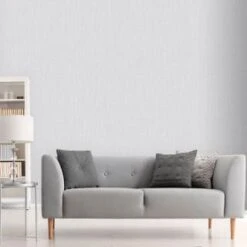 A simple, understated weave effect wallpaper in soft greys and metallic silvers.