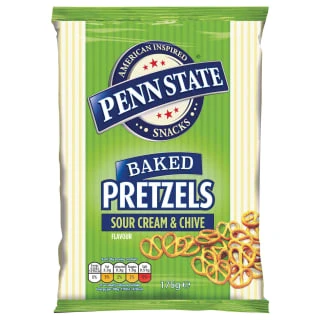 Satisfy your savoury snack cravings with Penn State Sour Cream & Chive Pretzels.