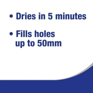 - Fills holes up to 50mm deep